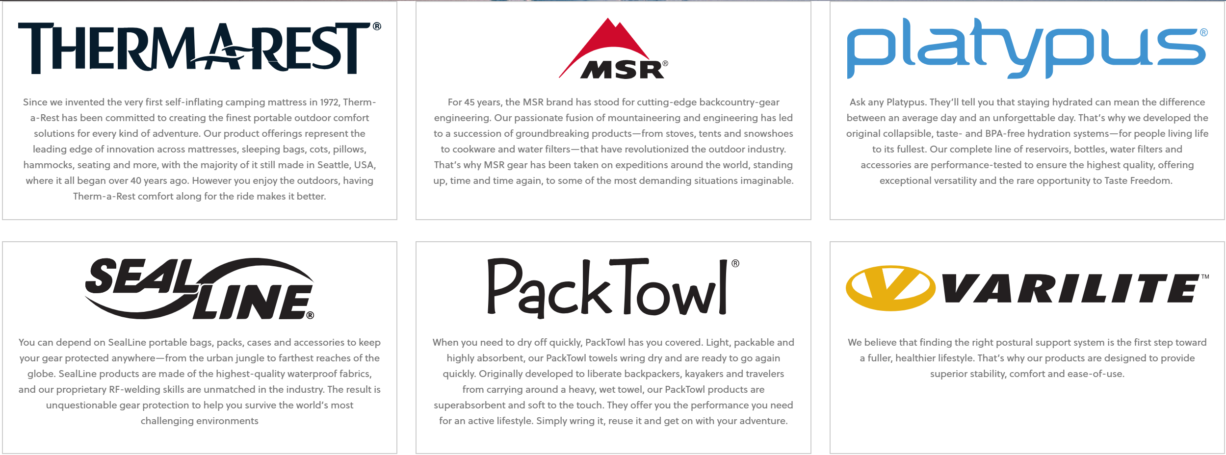 Cascade Designs이 현재 소유하고 있는 브랜드는 현재 총 6개로 아웃도어 시장에서 발전하고 있는 기업 입니다.